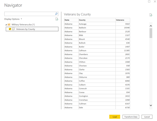 Step 3: In the Navigator window, select the required sheets & click Load. Clicking on Transform data will take you to the Power Query Editor.