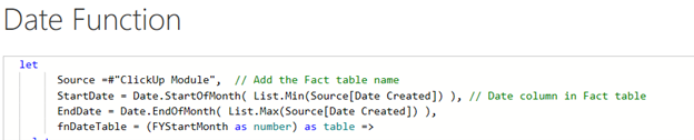 Source =#”ClickUp Module”, // Add the Fact table name